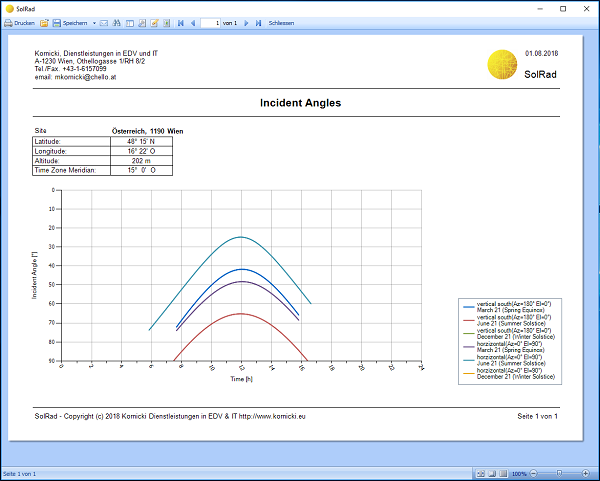 The original version of the SolRad program was developed by the Office of Applied Mathematics, Dr. Walter Heindl, in Vienna from the late 1970s to the early 1980s. Between 1990 and 2003, Tomasz Kornicki, in collaboration with Dr. Krec, created another version of the program.
