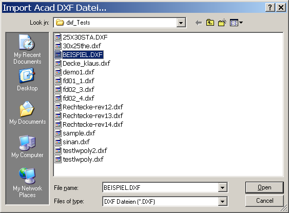 ausgeschrieben werden, muss nicht der Reihenfolge der CAD-Eingabe folgen. Anmerkung: Ist der Import einer DXF Datei nicht erfolgreich wird eine entsprechende Fehlermeldung angezeigt. Das Projekt ist Leer. Siehe auch: Anforderung an DXF-Datei, Import einer 3D DXF Datei, Elementauswahl Fenster , Baustoffe - Fenster, Die Bearbeitungsfenster (Eingabefenster) |