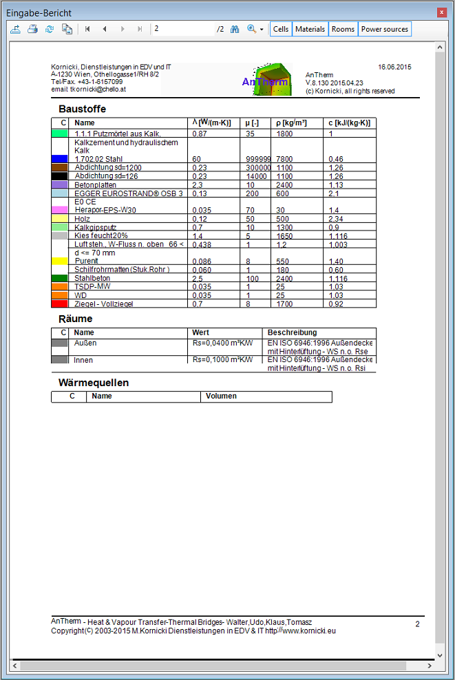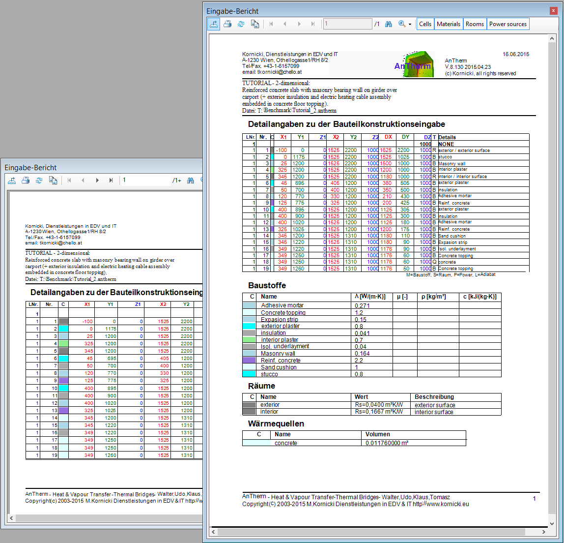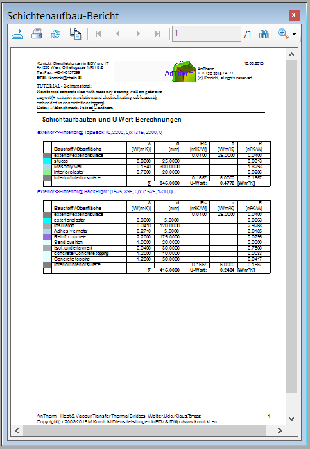 keine, einen oder auch mehrere Schichtaufbauten Raum-zu-Raum. Um eine detaillierte Auswertung aller eingegebenen Daten, einschließlich Detailliste aller Elemente, zu erhalten, benutzen Sie den Detailangaben-zur-Bauteilkonstruktionseingabe-Bericht. Wärmeströme-Berichte