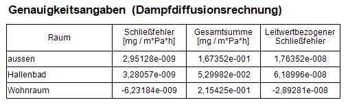 Gleiche Genauigkeitsindikatoren, d.h. (*), (**) und die Warnmeldung, werden für die Basislösungen der Dampfdiffusionsaufgabe beim Vergleich mit den selben Genauigkeitskriterien angezeigt (siehe oben).