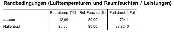 Liegt der Wert des Partialdruckes oberhalb des Sättigungsdampfdruckes, wird die jeweilige Punktzeile mit einem Stern (*) neben dem Wert des Partialdrucks markiert - es ist an diesem Punkt mit möglicher Wasserdampfkondensation zu rechnen.