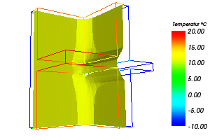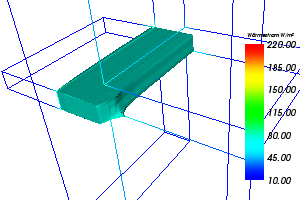 Tipp: Zur Identifikation und Lokalisierung der Lage von Wärmebrücken ergibt sich eine wertvolle Auswertung durch die Visualisierung einer Isofläche eines hohen Wertes im Feld der Wärmestromdichte.