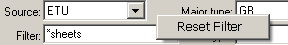 By selecting required filter criteria (Source, Major type, Type and Name filter) one can reduce amount of shown materials to those currently searched for. The filter setting is retained between application executions (will be saved together with application settings).
