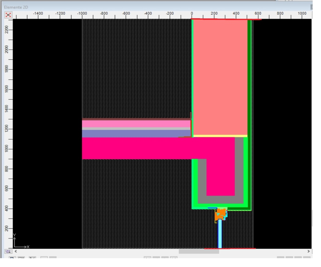 For standard calculation, the area of architectural width/ recess has to be used as the window area. Of course, the U-value of the window is used to calculate the coupling coefficient for this area. This approach is used in the calculation of the psi value by setting the "reference point". Also this parameter must be explicitly specified by the user and will be used by AnTherm automatically to calculate the lengths of the two-dimensional model.