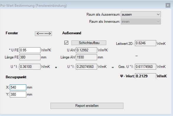 The choice of the reference point, which is to be determined by the user, serves the automatically recalculate of the lengths required for the Psi-value calculation.