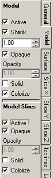 By default the view of model slices is turned off or set to wireframe. This is required to avoid overlapping of that representation with slices of selected function and to avoid confusing results and interpretation difficulties when too many lines are simultaneously shown during initial display.