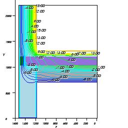 The view onto edges of slice planes (these are located at the surface of the model) can be turned on or off within the control panel „Surface“. This is important ion the context of wireframe view of the modelled construction to either show lines coloured by material or by selected evaluation function.